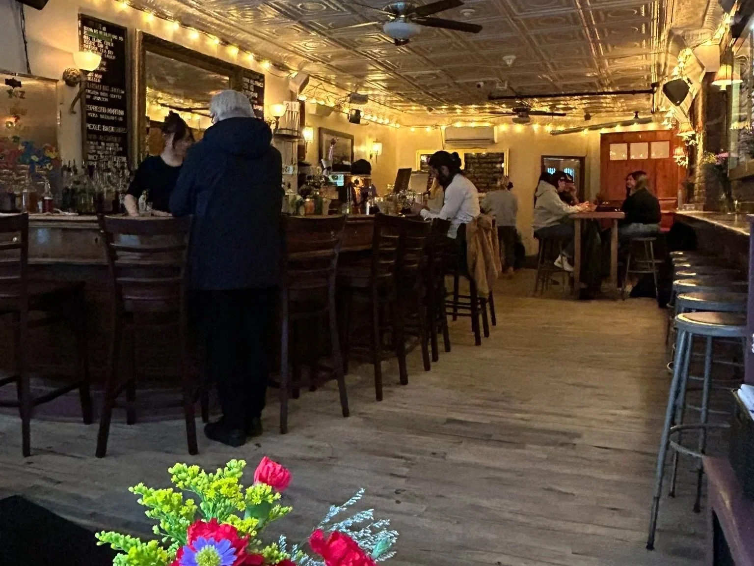 Dozens of people seem to enjoy hanging around the central atrium, not a bad place to linger, but we want a drink before dinner. Since our restaurant is downtown, we catch a subway to Spring Street and Mother’s Ruin, a funky bar that specializes in frozen drinks, an odd choice on a cold day, but we’re here to explore.